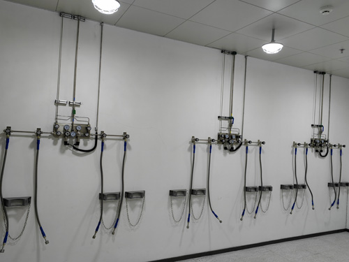 2.4N氫氣行政主管線采取OD3/8”(6.35mm)的通風通道,0.5Mpa阻力粗俗量多達8M3/小時,幾乎考慮常規性用氣市場需求,支線采取OD1/4”(6.35mm)的通風通道。用對接焊三通接頭分辨支路來對機實現供汽。